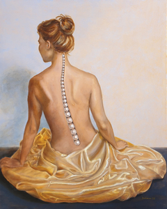 2025geschilderd op een houten 3D paneel, ca 3 cm diep. Het middenstuk van het schilderij is met een speciale ultramatte acrylverf geschilderd die het licht niet gefelecteerd waardoor je niet kan focussen op de opening in het ei.